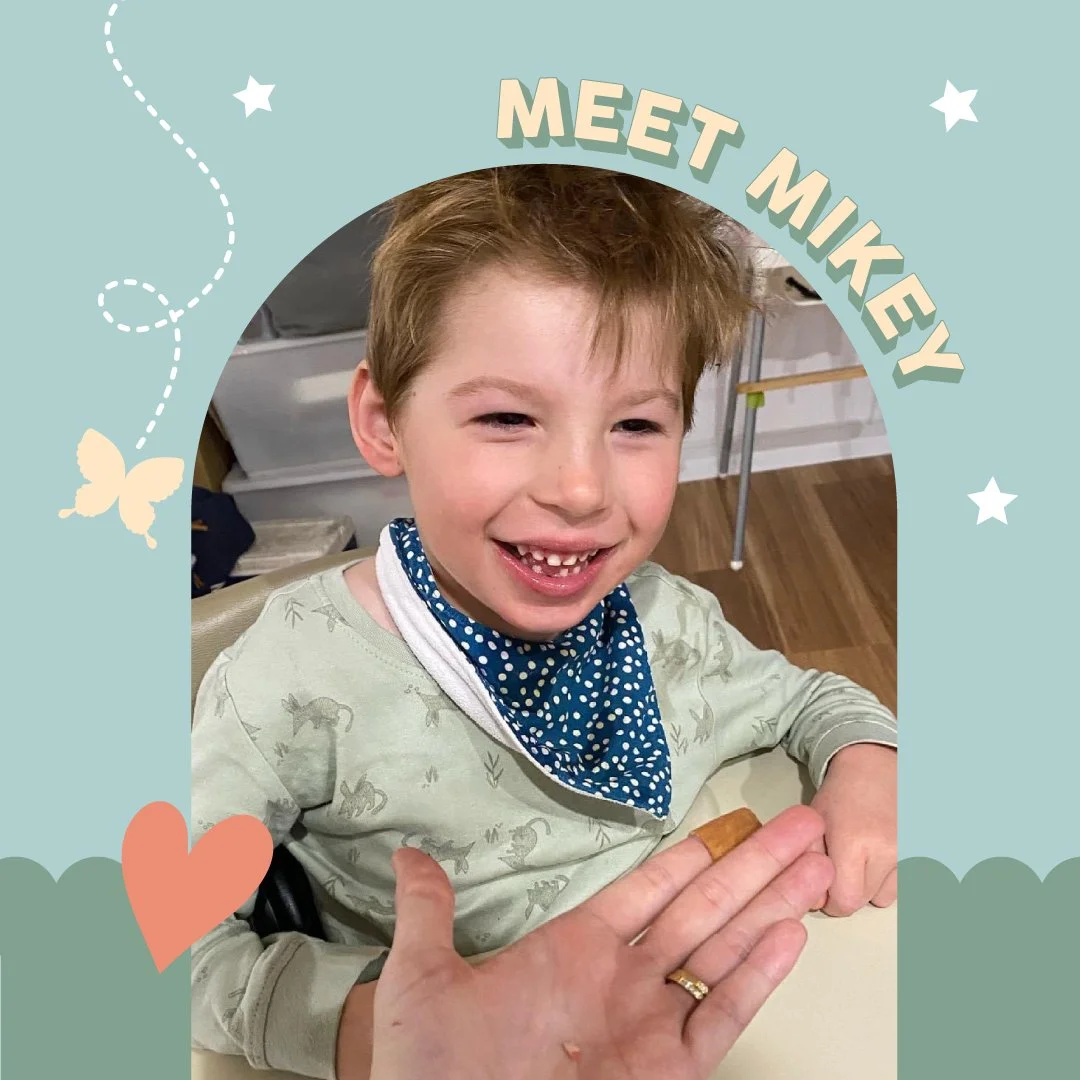 Mikey had a traumatic start to life. He was born 4 weeks early via emergency C section due to reduced movement. He arrived blue and not breathing, doctors thought it was too late. With a bit of help Mikey started to breathe and was rushed to NICU. Mikey was having constant seizures in NICU so he was transferred to PMH just hours old for hypothermic cooling. His body temperature was reduced to 33 degrees for 72 hours and then slowly warmed up. After an MRI at five days old we were told Mikey had suffered a lack of oxygen in his final hours in the womb resulting in Hypoxic Ischemic Encephalopathy (HIE) – severe global brain damage. Within months Mikey received diagnoses of quadriplegic spastic cerebral palsy, epilepsy, microcephaly, hearing loss and global developmental delay.